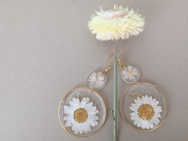 Nos boucles d’oreilles fantaisie pour femme sont fabriquées en France à base de résine avec des fleurs naturelles séchées. La technique de mélange des différentes teintes rende ces boucles d’oreilles unique.